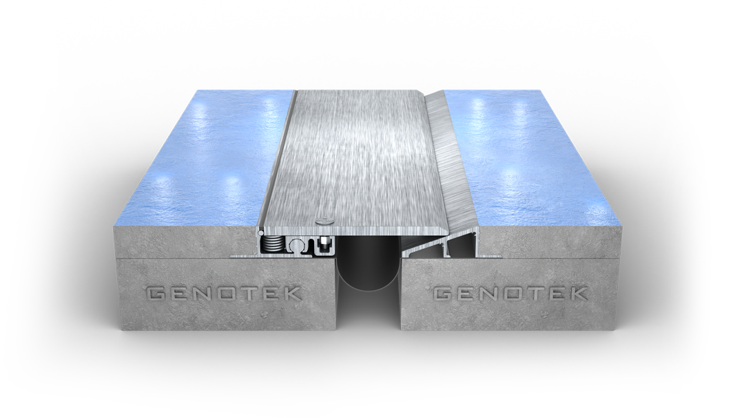 this expansion joint system is designed to handle thermal & seismic -movements, allowing adjacent concrete slabs to expand and contract naturally. the interlocking center plate provides additional stability, making it a reliable choice for high-use environments.